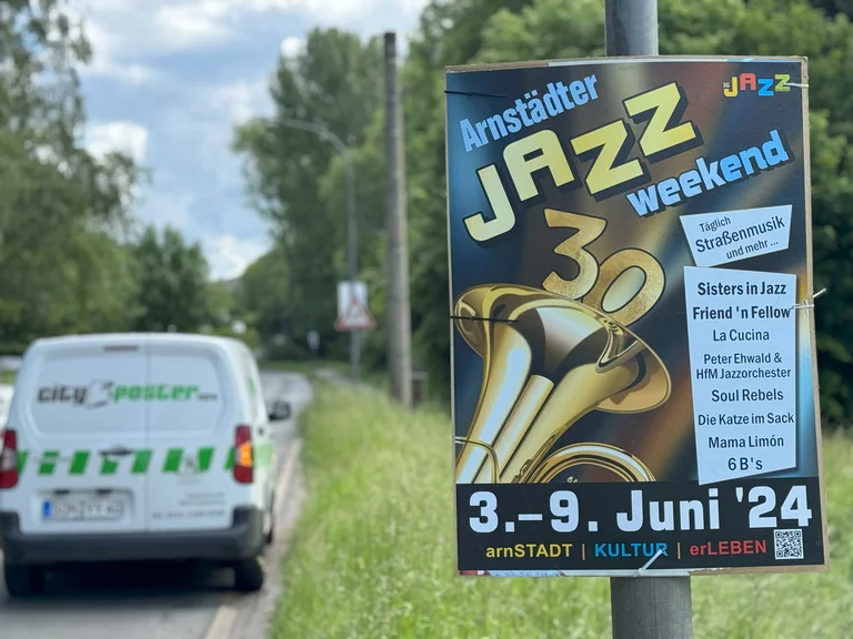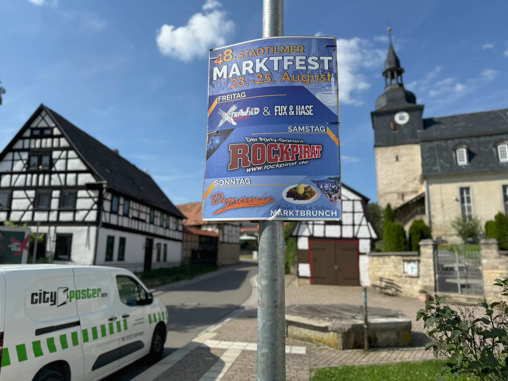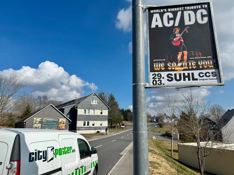Wir bringen Ihre Kampagne genau dorthin: an Laternen entlang der Hauptstraßen, in Stadtzentren und an stark befahrenen Plätzen in Süd-Thüringen, Oberfranken und Unterfranken.